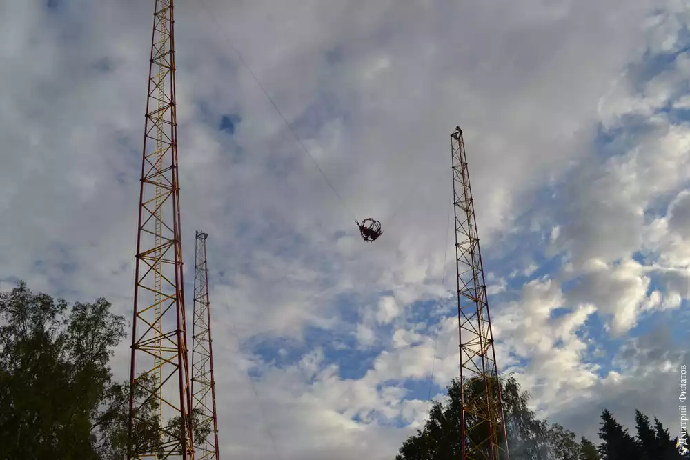 Чтобы узнать, что такое настоящий экстрим, не обязательно ехать в другую страну. Парк “Диво-остров” в Санкт-Петербурге впечатляет, особенно аттракционом “Катапульта”. Представляет собой две колонны и два троса между ними, они могут ослабляться и натягиваться. На тросах есть капсула, в которой размещаются посетители. Затем ей выстреливают ввысь, верхняя точка полета находится на 54 метрах над землей. После достижения высшей точки идет падение, после чего капсула натягивает крепления, замедляется и вновь подскакивает вверх.