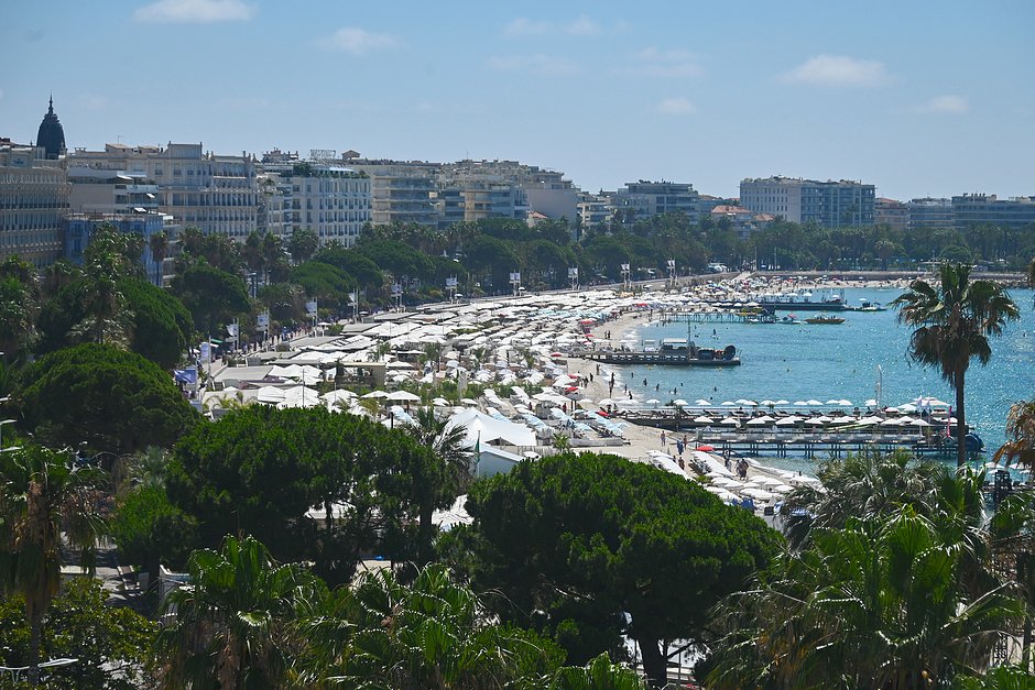 Вид на пляж рядом с набережной Круазет в Каннах