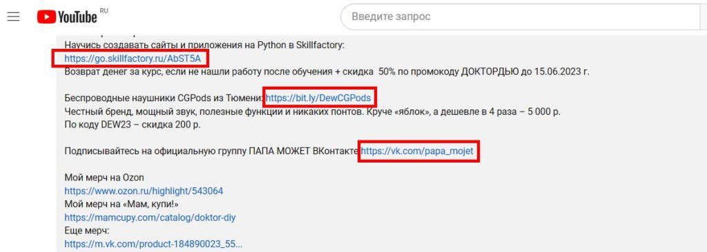 4) реклама в описании под видео — ссылки на ваши ресурсы и краткое описание товаров даются под роликом, оплата обычно осуществляется за каждый клик по этим линкам.