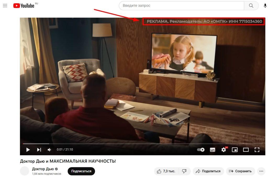 2) ваш ролик перед основным видео или во время паузы для рекламной интеграции;