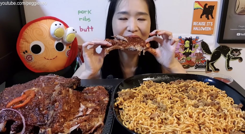 Возможно, с этим связана и обязательность огромных порций в мукбанге. Говорят, что если вы едите обычную порцию на камеру — это не мукбанг, вы просто едите на камеру.