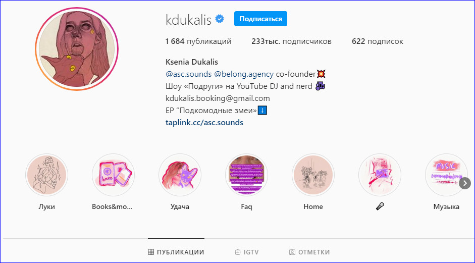 Шапка Инстаграм-аккаунта Ксении